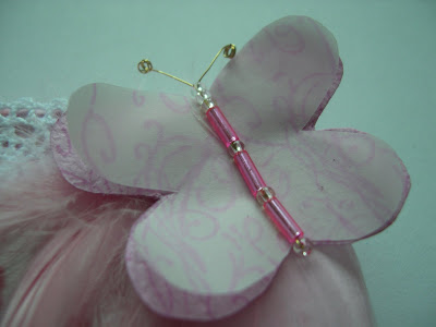 Une petit toile à offrir, qui sait... un modèle 100 % fille, garanti rose, dentelle, plumes et papillon pour assortir à un petit défi Katzlekraft proposé par Christou et ValduLac... Tout d'abord une petite vue d'ensemble...
