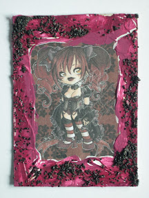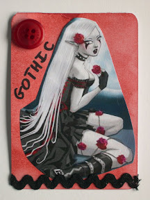Il y a quelques semaines, afin de remettre un pied dans la fabrication de tites choses décentrantes, je me suis inscrite à un échange d'atc sur le thème "gothique" proposé par Alexandra sur le forum des ATC,