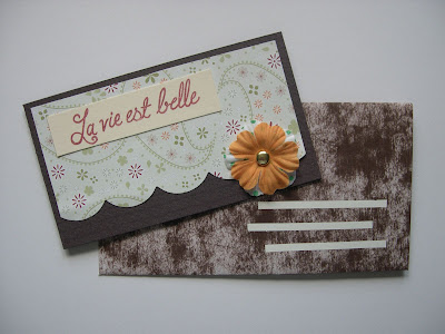 Et puisque je farfouillais dans les chutes de papiers et autres choses à déstocker, j'ai ressorti ma dernière "impression" de pseudo-adage "la vie est belle".