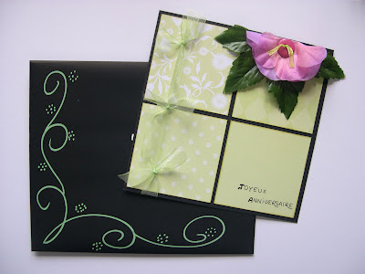 J'ai réalisé également une carte d'anniversaire à partir du schéma créatif du défi "9 semaines avant Noël" forum Katzelkraft... :